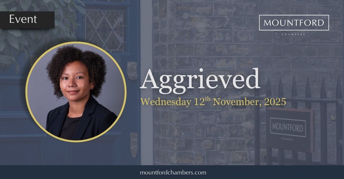 Join us on Wednesday 12th November at Mountford Chambers for the next Aggrieved panel session, chaired by Georgia-Mae Chung.